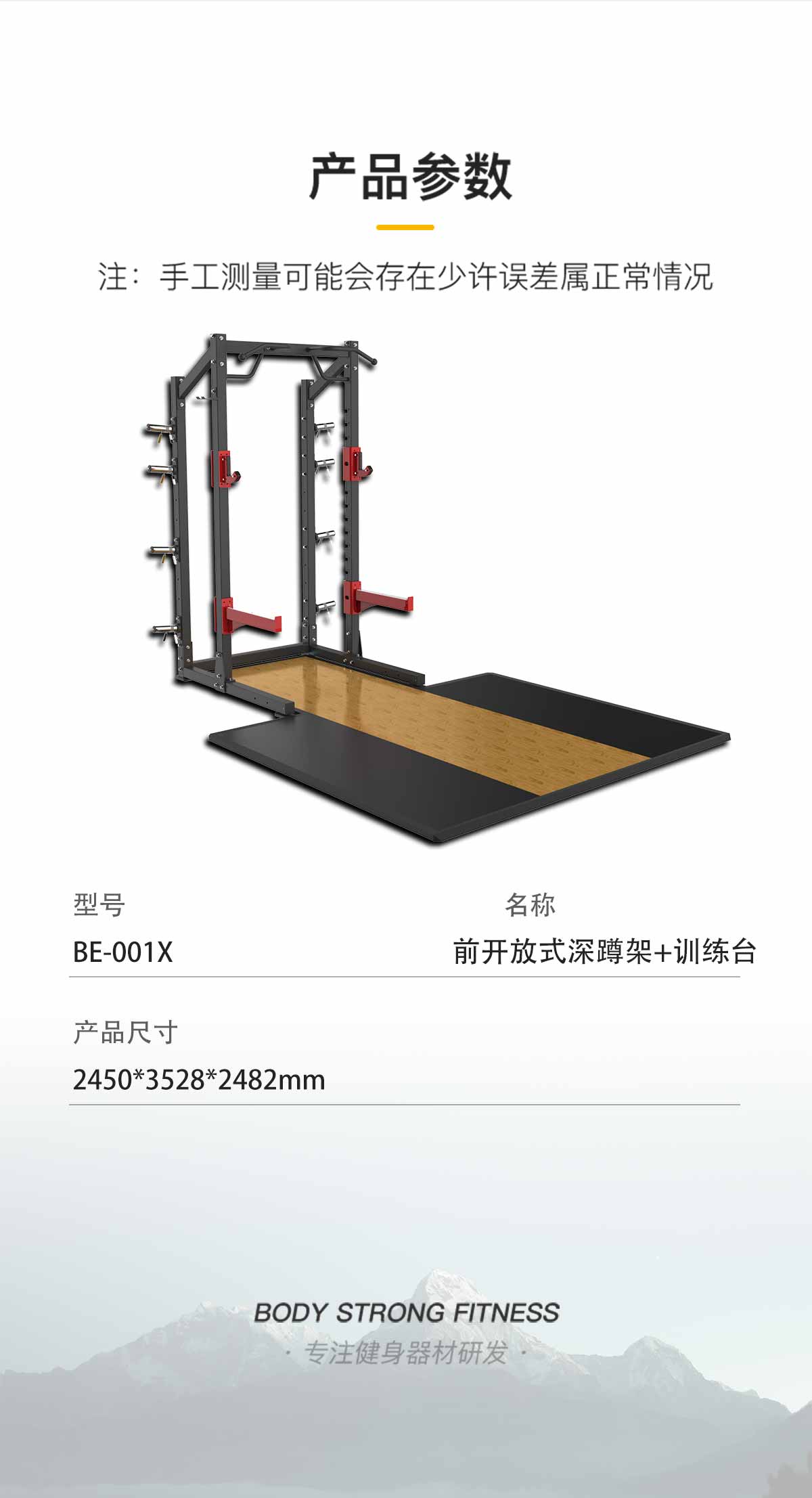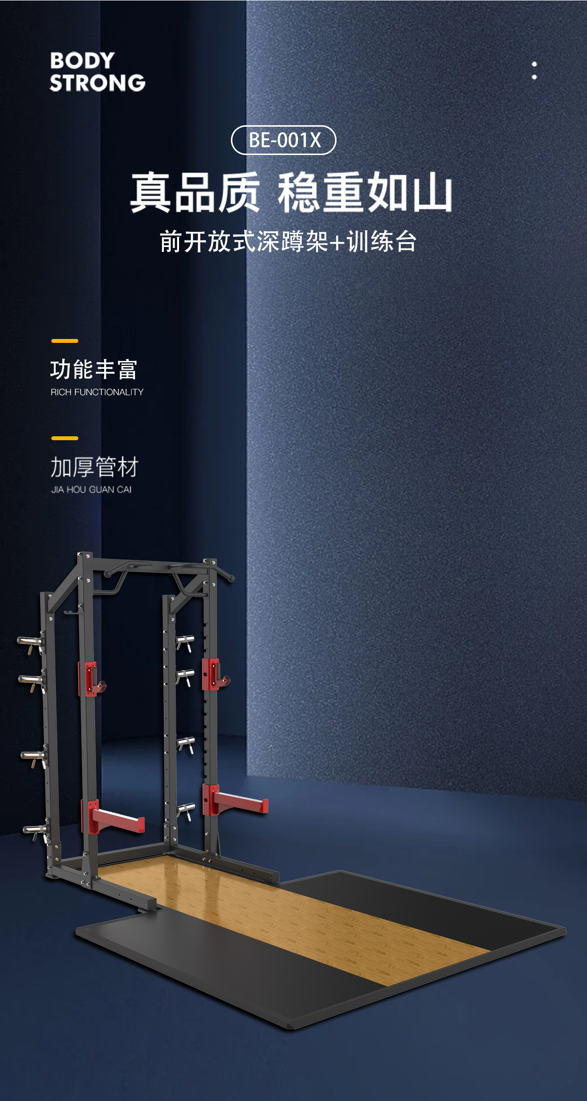 BE001X 前开放式深蹲架+训练台